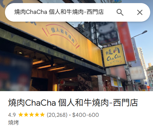 之前去吃過裕隆城「燒肉ChaCha個人和牛燒肉」,這次想說來吃看看西門店的,因為對這家的觀感真的很好,想說另一家分店應該也不會差,而且GOOGLE評價高達4.9